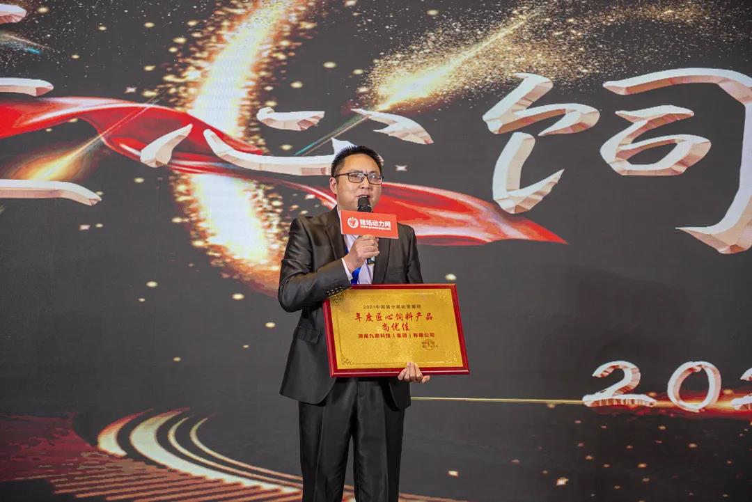 在頒獎(jiǎng)典禮上,集團(tuán)技術(shù)研發(fā)中心總經(jīng)理江書忠榮獲“年度領(lǐng)軍人物”,集團(tuán)教槽料產(chǎn)品“尚優(yōu)佳”榮獲“年度匠心無(wú)抗飼料產(chǎn)品獎(jiǎng)”。這是行業(yè)以及社會(huì)各界對(duì)九鼎集團(tuán)研發(fā)實(shí)力以及產(chǎn)品品質(zhì)的高度認(rèn)可及肯定。