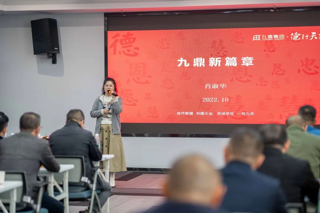 集團(tuán)副總裁肖淑華圍繞“九鼎新篇章、九鼎飼料價(jià)值服務(wù)體系、九鼎飼料不一樣”三大主題作工作指導(dǎo)