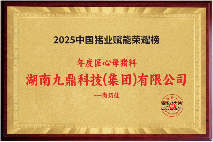 2025年10月17日晚,由豬場(chǎng)動(dòng)力網(wǎng)、湖南農(nóng)業(yè)大學(xué)動(dòng)物醫(yī)學(xué)院聯(lián)合主辦,湖南九鼎科技(集團(tuán))有限公司冠名的2025第五屆中國(guó)豬業(yè)賦能大會(huì)暨賦能榮耀榜頒獎(jiǎng)盛典晚宴——“九鼎之夜”在湖南省長(zhǎng)沙市明城國(guó)際大酒店隆重舉行,來(lái)自全國(guó)各地的畜牧產(chǎn)業(yè)鏈合作伙伴近400人齊聚一堂,共謀發(fā)展。其中,九鼎集團(tuán)超吉大000教槽料榮獲“2025年度匠心教槽料”、尚奶佳榮獲“2025年度匠心母豬料”。